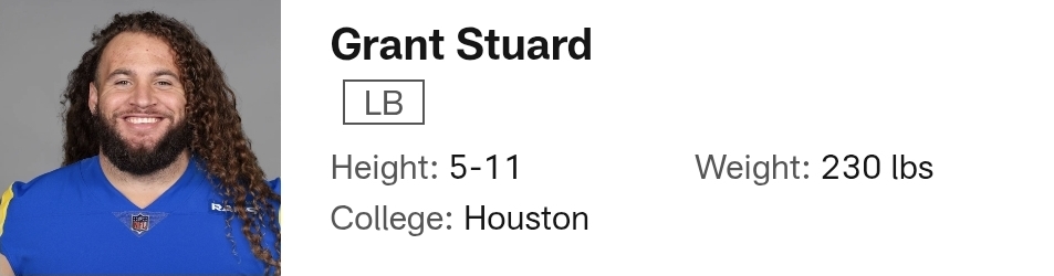 Grant Stuard nach L.A. zu holen ist ein guter Weg das Special Teams zu verbessern. Er bringt Geschwindigkeit, Härte und eine Prise „Verrücktheit“ mit, die den Rams in den Special Teams gefehlt hat – für mich ein top signing. Hoffentlich kann er eine markante Note setzen.