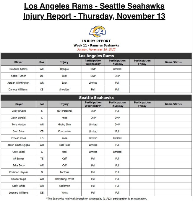 — Los Angeles Rams (@RamsNFL) November 13, 2025