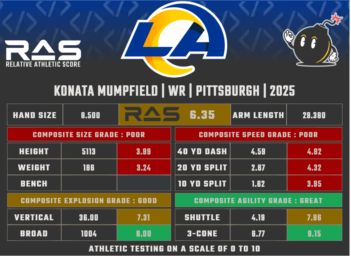 Als die Los Angeles Rams das letzte Mal einen Spieler von University of Pittsburgh im NFL Draft auswählten, war dieser niemand Geringeres als Aaron Donald. Mit ihrem letzten Pick im NFL Draft 2025 holten die Rams Wide Receiver Konata Mumpfield. Ob den Rams mit Konata wieder einen Treffer gelungen ist, wie Aaron Donald es war, bleibt abzuwarten, zumal man den Druck auf den jungen Mann nicht unnötig strapazieren muss.